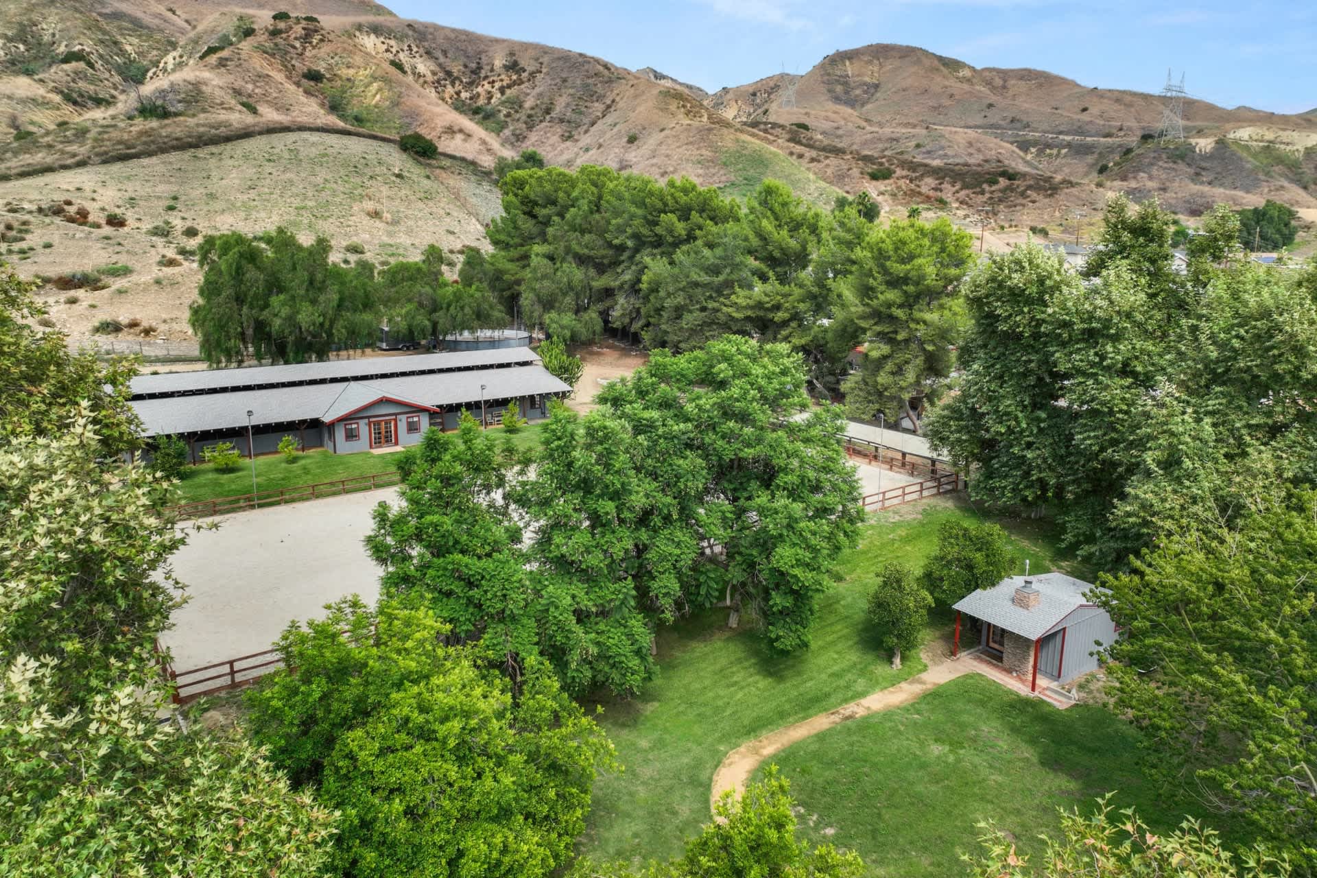 Welcome to Rancho Bizarro, the former estate of a beloved and legendary Hollywood Actor. Housed on almost four and a half acres, this one-of-a-kind equestrian Ranch offers wonderful amenities, total tranquility, and space for a broad variety of sport and livestock. Automatic gates tucked away at the end of a cul-de-sac reveal a unique and private retreat with expansive space to live, ride, work and create amongst multiple structures. The primary residence on the property is a charming 1940’s California Ranch-style house featuring three bedrooms, hardwood floors, and rustic exposed beams. Walls of French doors and a glassed-in atrium overlook expansive meadows, mature trees, and a large free-form pool. A large flex space invites your imagination to serve a multitude of uses: it could easily house an extensive home gym, fully furnished rehearsal space for dance or theater performance, or a light-filled art studio. Beautiful covered patios and custom-tiled outdoor dining spaces flank this central building for luxurious al fresco breakfasts or evening entertaining for you and your guests. Across the lawn is a guest cottage with a bath, as well as an oversized detached garage and storage space. The spectacular equestrian areas include a fully equipped barn with eleven horse stalls, a tack room, laundry room and two grooming stalls. A clubhouse viewing room with a bathroom is situated to observe the professionally lighted and mirrored riding arena just outside. The grounds also include two round pens, a goat pen with resident goats Cocoa and Caramel, and two friendly ducks named Baby and Johnny who enjoy lounging under the lush trees on the property. An indelible part of Hollywood history, this estate has numerous walking and hiking opportunities, views of the ridgetop, and private, rustic quality of life a short distance from the best part of Los Angeles.
