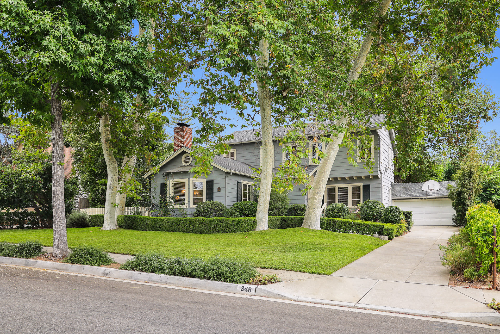 This distinctive property, known as the Cason House, was designed with a rich architectural vocabulary, an Art Moderne Colonial Revival-style home with upscale, stylish details. Constructed in 1937 with quality materials, this gracious home has earned designation as a Monrovia Historic Landmark, providing the owners tremendous savings in reduced property taxes from participation in the Mills Act Program. Past and present owners of the Cason House have provided conscientious and loving maintenance over the years. This attractive property encompasses all that the word "home" entails, satisfying those appreciative of the vintage design elements while enjoying the upgraded amenities seamlessly integrated into its historic fabric. Some of the many original features include the exterior siding, lovely windows, interior doors with charming hardware, trey ceiling, chair railing, decorative display shelves, well-maintained bathroom tilework and fixtures as well as handsome oak flooring throughout most of the home. The common rooms are nicely sized offering period details for an overall appealing interior. A spacious formal living room is located off the entry and features an attractive "Heatilator" fireplace, wall-to-wall bookshelves, views of the front and side yards and abundant shade from the mature sycamore trees, all to the accompaniment of the soothing sounds of the outdoor water fountain. There is a separate formal dining room that opens to the thoughtfully updated kitchen offering an inkitchen breakfast room with built-in cabinets and access to the rear yard and large deck with retractable awnings for enjoyable outdoor meals. There is a downstairs bedroom (currently used as a den), three-quarter bath with shower and a separate laundry area that complete the lower level. There are two large bedrooms upstairs. The primary bedroom features a dressing room and a full bathroom with original features that will delight all. There is also a finished sleeping porch that currently works beautifully as an office. The equally large second bedroom on the south side has plenty of space for any decor ideas and a fun "secret" room for play or out-of-the-way storage as a real plus. The home is encircled by delightful garden spaces which can be enjoyed by the most avid at-home gardener or by those desiring at-home relaxation amid the verdant beauty created by the mature and varied trees (fruit and shade alike), attractive shrubbery and manageable outdoor spaces. Ideally located north of Foothill and just a few blocks from Monrovia's charming boutiques, unique shops and array of delicious restaurants, this is a home to love for the ages with eye-catching architectural details and today's amenities for a comfortable lifestyle.