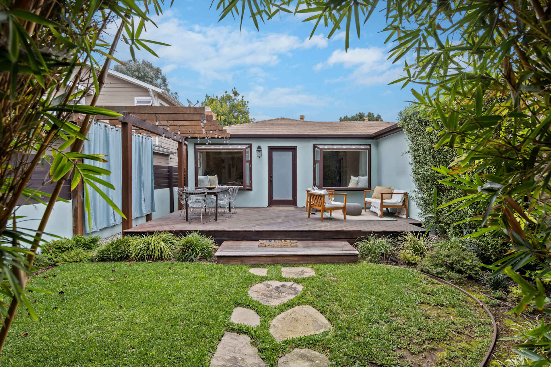 Set within the highly desirable Oxford Triangle neighborhood nestled between Venice and Marina Del Rey, the home pairs sophisticated interior finishes with a secluded outdoor setting for an elevated take on laidback California living. The gated front yard features a lush bamboo hedge providing privacy and security, a trio of tall palms and a lawn area. A sun deck creates true indoor-outdoor living spaces perfect for alfresco dining, entertaining and outdoor enjoyment. An open-concept floor plan is flooded with natural light by way of dual custom-built bay windows with bench seats set adjacent to the central tiled hearth that anchors the dining and living areas with walnut flooring throughout. The kitchen features blue-stone tiled floors, granite counters with a tiled backsplash and stainless steel appliances. A spacious primary suite offers vaulted ceilings, a walk-in closet and en-suite spa-like bath with a pebble-stone wall, large soaking tub, separate shower and dual vanity. A wall of glass provides light and access to the rear yard with mature citrus trees and an area for sun-lounging and ultimate relaxation. Two additional guest rooms, a full bath, an additional bonus room perfect for a work-from-home office, yoga or fitness room and separate laundry room enhance this tranquil home. Close convenience to Abbot Kinney, the marina and yacht clubs, beaches, the Venice Canals and high-end shopping boutiques, dining, art and entertainment.