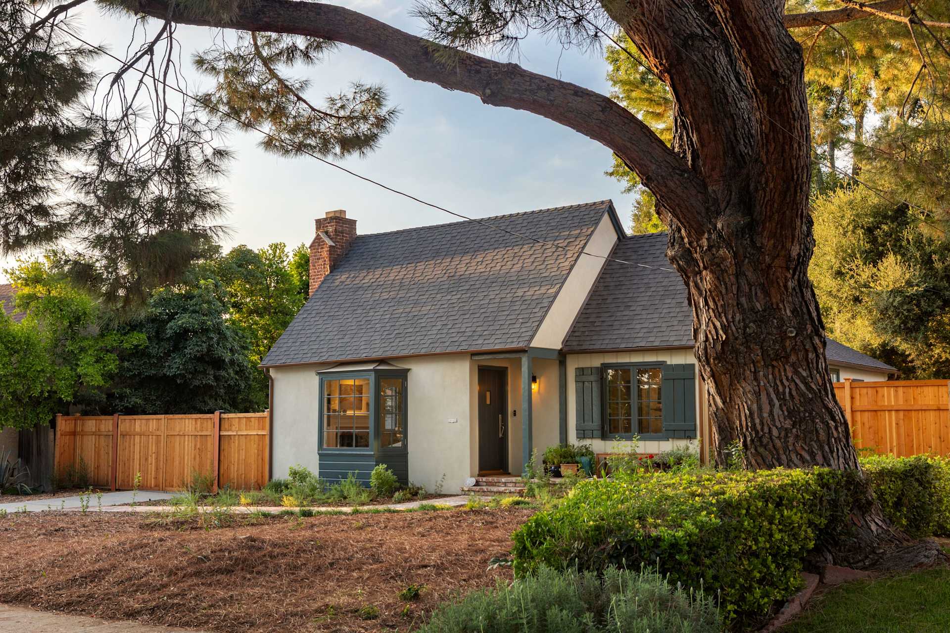 Meticulously restored English Cottage Revival Style Bungalow with detached garage on a tree-lined street in the coveted Washington Square Landmark District. Situated on a broad and flat double lot measuring 12,547 square feet; this 2 bedroom, 1 bathroom Mills-Act protected home was entirely restored and re-imagined by acclaimed designer Cynthia Boyd. It’s updated to the highest of contemporary standards, while also carefully preserving its historic character and defining features. Visitors enter through a recessed entry, opening to a light-filled generous living room, showcasing 3/4” chambord smoked solid french oak hardwood flooring and original fireplace. Adjoining is the dining area that transitions to the chefs-kitchen – perfectly combining design and functionality with custom cabinetry and hardware, Quartzite countertops and new Bosch appliances. The two bedrooms share a beautifully renovated bathroom with cast-iron soaking tub, walk-in shower, handmade tiles and stone floors. Closet and storage space throughout. The large brick-laid rear patio previews the fenced, expansive backyard with mature oaks, native plants and privacy hedges. Energy efficiency, sustainability and aesthetics are central to every feature, including: Certainteed Landmark TL Solaris 50-year roof with Cool Roof technology, Rheem Proterra performance platinum heat pump hybrid water heater; High-efficiency HVAC and insulation; Pentair water filter; Brilliant Smart Lighting system; Tesla charger; to name a few. New plumbing, electrical, windows and doors. Copper vents and gutters. California basement. Expansion opportunities with schematic designs by Cynthia Boyd are available for both the build-out of the existing two-car garage, as well as a separate 850 square foot ADU proposed to be constructed amongst spacious grounds.