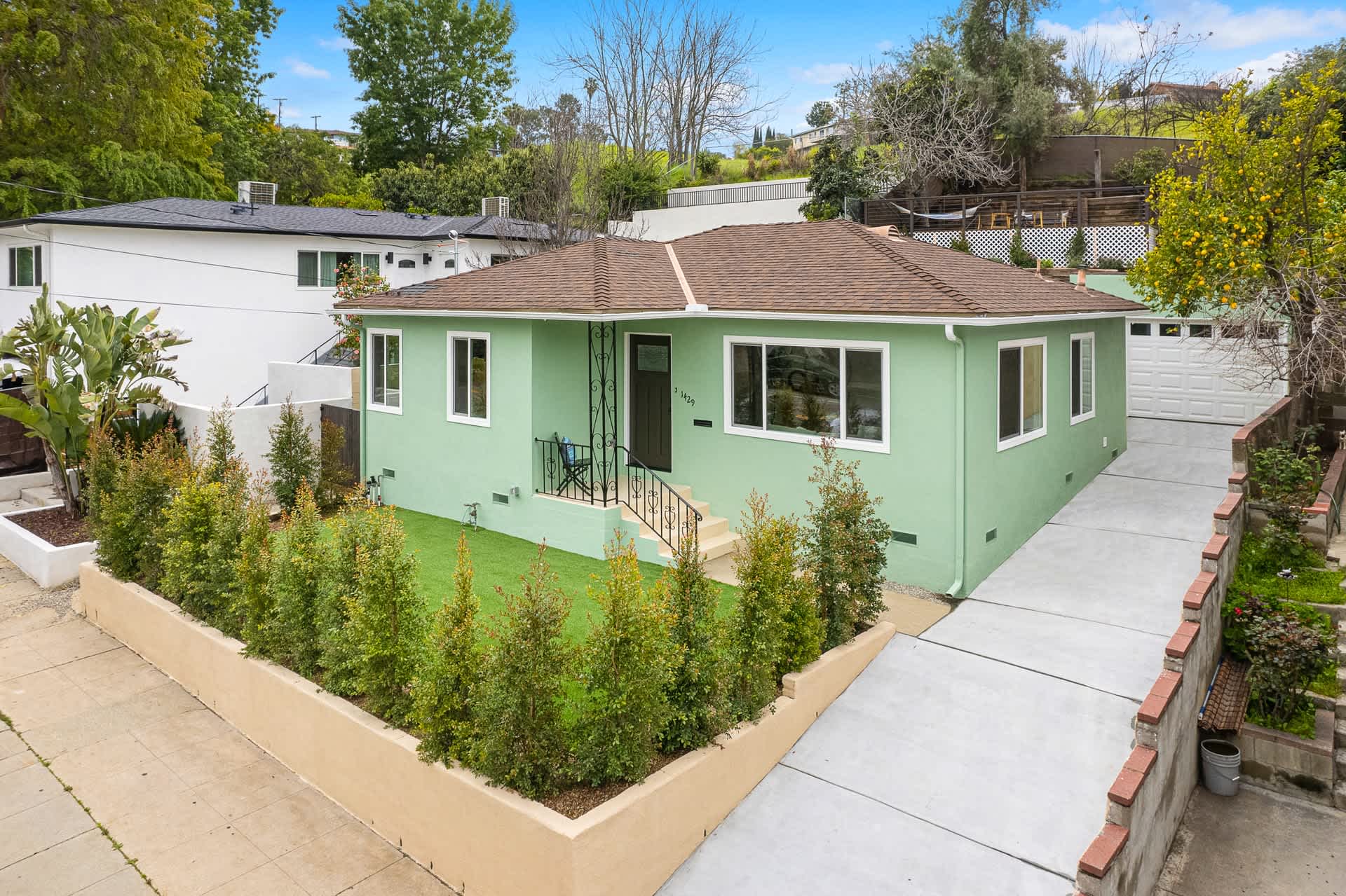Located in the heart of NELA and perched above the street is this cozy turn-key, 1952 California Mid-Century Traditional. Tastefully renovated from the inside to the outside. This home offers two bedrooms and one bathroom, with a living space of 852 square feet on a 4,870 square foot lot. The entry welcomes you to the main living spaces which consist of the living room, dining area, and re-imagined kitchen. Other kitchen appointments include new cabinetry with plenty of storage, new quartz countertops, and new stainless-steel appliances. Other new features include Stone Polymer Composite waterproof flooring throughout, new vinyl dual pane windows, recessed lighting, central heat and air system, tankless water heater, and a mahogany front door. The terraced backyard offers multiple entertaining areas including a generous covered patio with low maintenance open yard space on the same level, but the showstopper is the oversized deck on the upper level of the yard. This space is perfect for all year-round gatherings with friends and family, evening hangouts, or just quiet times with your favorite beverage while enjoying the spectacular views of the Verdugo and San Gabriel Mountains. This home is centrally located and minutes away to trendy Eagle Rock and Highland Park restaurants and shops, Dodger Stadium, and Downtown LA. Make this home yours today!