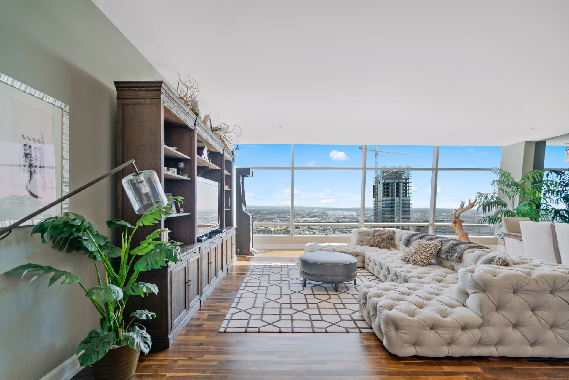 Contemporary, generous in size, and located in the heart of downtown Los Angeles, this is a rare opportunity to secure a highly sought-after home in the prestigious Ritz-Carlton Residences. This stunning haven, one of the largest in the building, has been tastefully reimagined to offer a perfect blend of sophisticated elegance and modern function. Inside the breathtaking 47th-floor unit, discover a vibrant interior displaying an impressive array of high-end finishes. From a sophisticated palette accentuated by gleaming tile and hardwood flooring to handcrafted tiled accent walls and striking designer wallpaper, impeccable details greet you at every turn. High ceilings adorned with upgraded spot lighting soar above the open-concept main gathering areas, anchored by floor-to-ceiling curtain glass walls framing sweeping city views. The desirable layout allows a seamless flow when entertaining in your living room and dining area. Opulent lighting sets an intimate mood for dinner parties while a mirrored accent wall visually expands the space. Sure to please even the most demanding cook, an exceptional kitchen treats you to a suite of state-of-the-art Gaggenau stainless steel appliances, sleek European-inspired cabinetry, and rich quartz countertops. Try new recipes as guests sip drinks at the oversized, multi-seater bar with two convenient wine refrigerators. Wake up to inspiring sunrises in all the bedrooms where thoughtfully designed closets have built-in organizers for the discerning fashionista. One is ensuite while a shared bath accommodates the other. Equal parts comfort and style, the generous primary suite showcases a seating area by the picture window. Imagine unwinding with a nightcap as you watch the sunset paint brilliant streaks across the sky. Pamper yourself in the luxe 5-piece ensuite with a double vanity, Robern medicine cabinets, a separate shower, and a spa-like soaking tub overlooking the horizon. A deep walk-in closet completes this truly private sanctuary. Glass barn doors imported from Germany reveal an abundance of storage space. Other notable features include an in-unit washer/dryer. As premium perks for living here, you get access to the world-class amenities the Ritz-Carlton is known for, including the resort-like pool and spa, two levels of community lounges, a private conference room, exercise room and room service. Additionally, you get to enjoy the services of the Ritz-Carlton Hotel. When you choose to venture out, an unbeatable location at LA Live, downtown LA's shopping, dining, and entertainment district puts everything you need just outside your doorstep. Ready to experience the enviable lifestyle that most only dream of? Come for a tour before this amazing residence is gone for good!